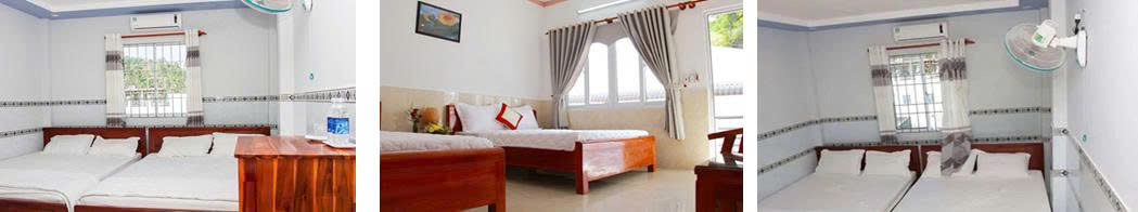 Nhà nghỉ có máy lạnh, toilet riêng: 2 - 3 - 4 khách/phòng. |