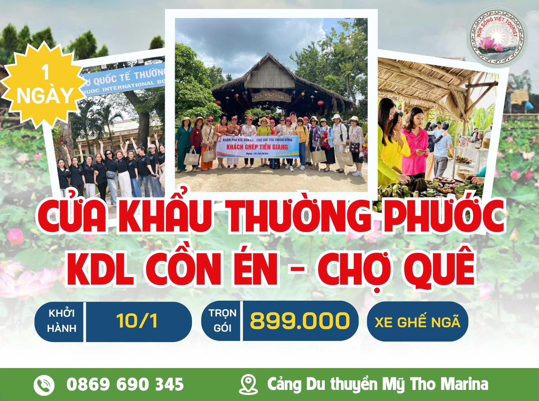 18h00: Về đến Tiền Giang, Xe đưa đoàn về điểm hẹn ban đầu, kết thúc chuyến tham quan, chia tay và hẹn gặp lại Quý khách Trên Mọi Nẻo Đường Du Lịch.