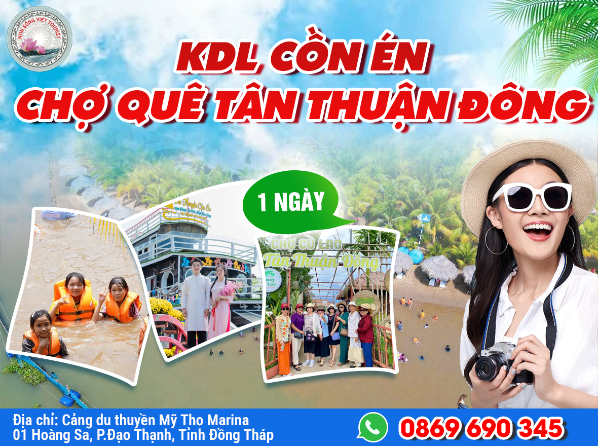 05h30: Xe và HDV Công ty du Lịch Non Sông Việt đón quý khách tại điểm hẹn, khởi hành đi Đồng Tháp. 06h30: Đến Đồng Tháp, Đoàn dừng chân dùng điểm tâm sáng tại nhà hàng, tiếp tục hành trình HDV thuyết minh và tổ chức các trò chơi trên xe. 09h00: Đoàn đến Khu du lịch Cồn Én - tham quan nơi được mệnh danh là “Maldives Miền Tây Việt Nam” giữa lòng An Giang. Quý khách sẽ check in bức tranh gỗ lũa – tác phẩm phong cảnh làng quê Việt Nam, khu trưng bày bộ sưu tập những chiếc xe mang biển số tứ quý, biển số tiến hiếm hoi, khu tàu gỗ 3 tầng, đài quan sát ngắm nhìn toàn bộ Cồn Én, Khu bonsai nghệ thuật các loại cây độc lạ. Trải nghiệm tắm cồn, bãi cát vàng nằm bên cạnh sông Tiền, tham gia các hoạt động vui chơi dưới nước như cầu lắc, vượt chướng ngại vật, cầu vượt,… 11h00: Đoàn dùng bữa trưa và tự do nghỉ ngơi, check -in cảnh đẹp tại Khu Du Lịch. 13h30: Quý khách khởi hành đến bến phà qua Cù lao Tân Thuận Đông tham quan Chợ Quê Tân Thuận Đông với những gian hàng được làm bằng tre nứa, mái lá đơn sơ. Xung quanh là bờ sông, hàng dừa nước, lũy tre già, bụi chuối... tạo nên dáng vẻ nên thơ miền Tây. Đây chính là thiên đường ẩm thực với nhiều món ăn từ dân dã đến hiện đại như bánh xèo, các loại bánh dân gian, các loại chè, cua, ốc, bắp nướng,… Ngoài ra nơi đây còn tổ chức giao lưu, biểu diễn đờn ca tài tử, hò Đồng Tháp,… 15h30: Tàu đưa Quý khách về lại đất liền, Đoàn lên xe khởi hành về Tiền Giang. 18h00: Về đến Tiền Giang, Xe đưa đoàn về điểm hẹn ban đầu, kết thúc chuyến tham quan, chia tay và hẹn gặp lại Quý khách Trên Mọi Nẻo Đường Du Lịch Cùng Non Sông Việt !!!! |