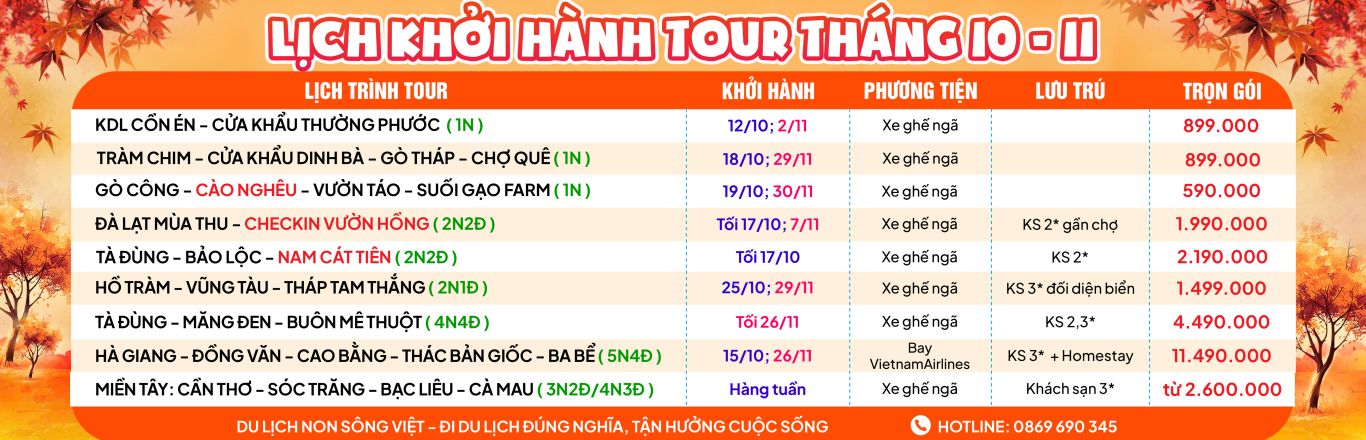 Khởi hành: 25/10; 29/11