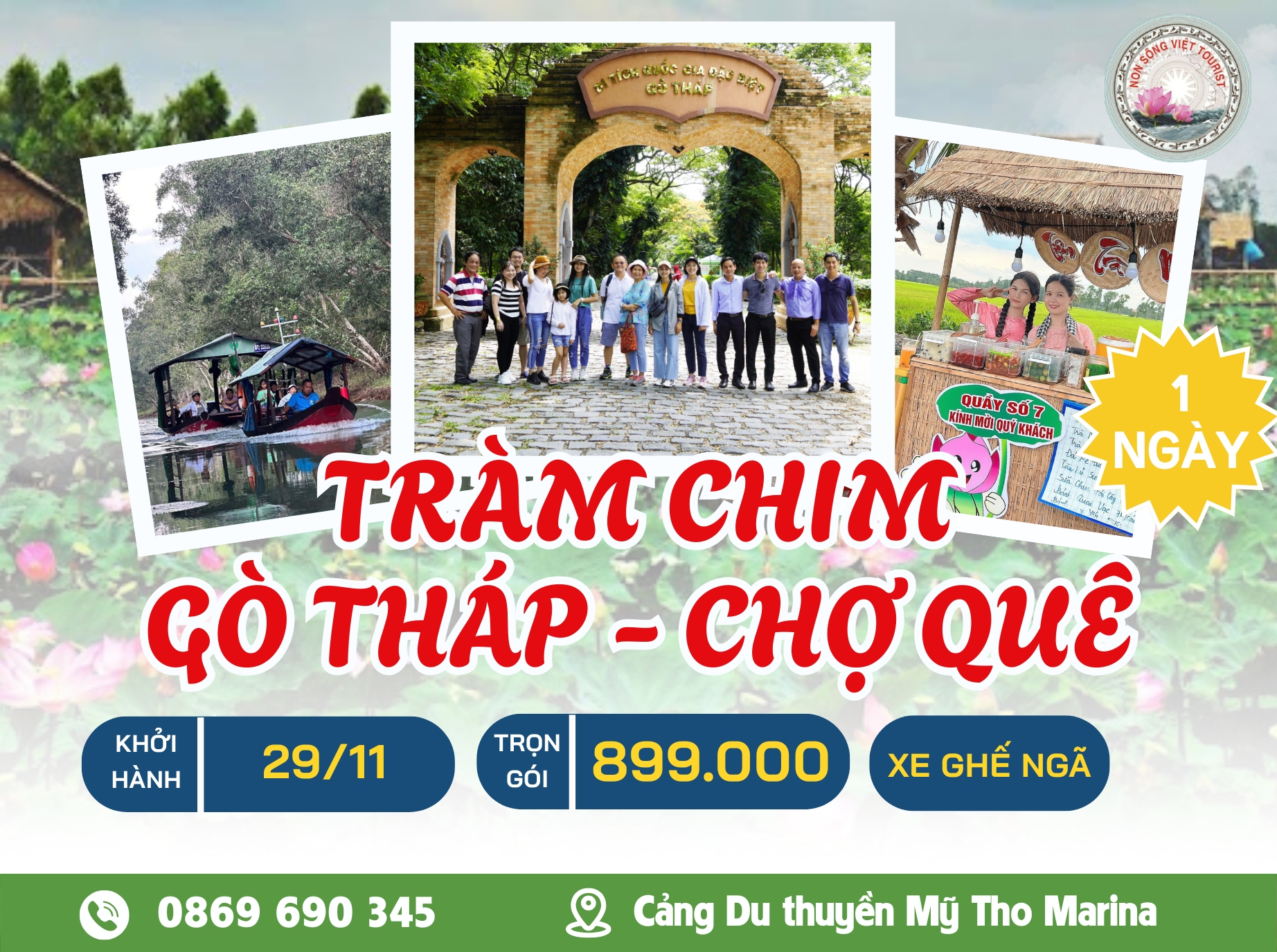 10h00: Quý khách đến Vườn Quốc Gia Tràm Chim Tam Nông - đây là Khu Ramsar thứ 2.000 của thế giới và thứ 4 của Việt Nam. Đoàn đi Xuồng Kéo tham quan cảm nhận vẻ đẹp mà thiên nhiên đã ban cho nơi này như: sen, súng, năng, lác… cùng các loài động vật rắn, rùa, trăn; các loài cá đồng và chim muông như cò, diệc, vịt trời, cồng cộc...